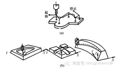 2.轮廓控制数控机床。能够同时对两个或两个以上的坐标轴进行连续控制,不仅控制轮廓的起点和终点,而且还要控制轨迹上每一点的速度和位置,因而能够加工曲线(或曲面)。
