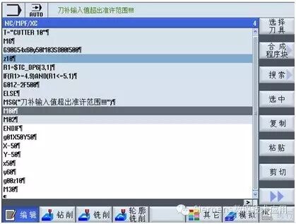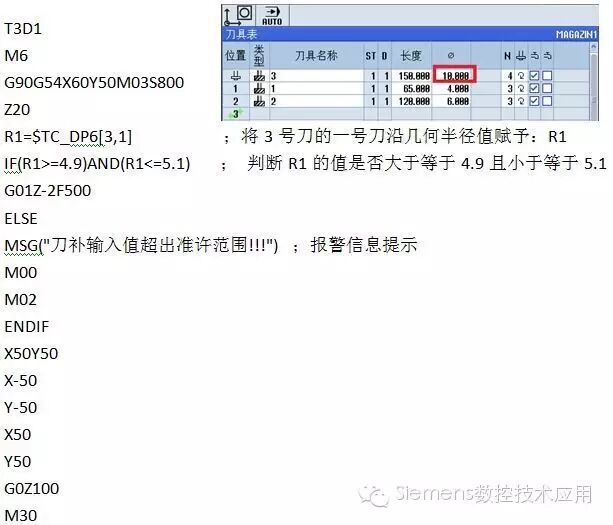 当3号刀1号刀沿里的刀具半径值满足IF条件时(如半径等于5),程序正常执行如下图:
