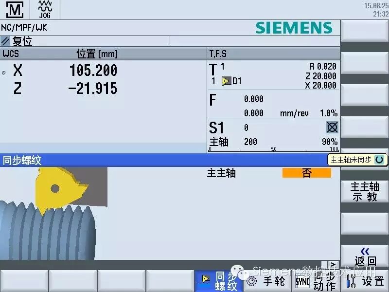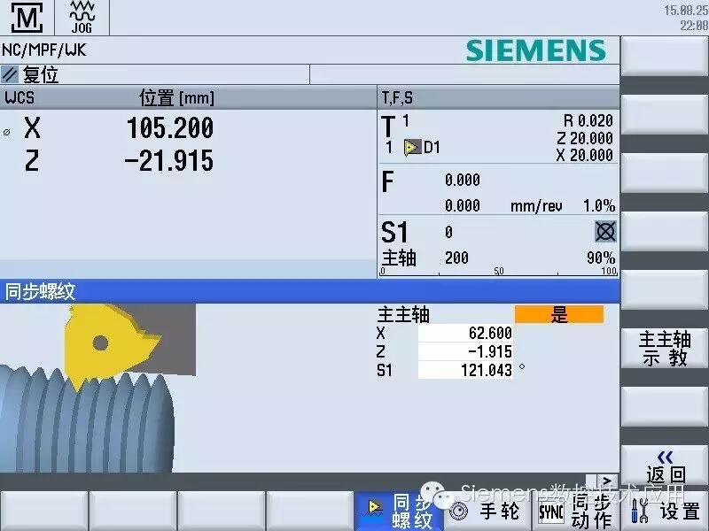 现介绍一种西门子Operator界面中简单快速修整螺纹的方法——同步螺纹功能。