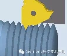 如帮助动画所示,手动将螺纹车刀缓慢移动到原螺纹工件上,任意螺纹内,使刀尖完全贴合原螺纹牙牙型,并且在主主轴或副主轴的下拉表中选择“是”,来激活了同步螺纹。