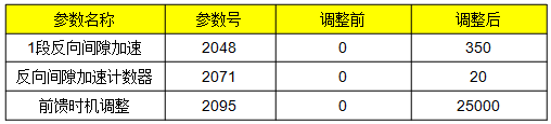 B转台初始快移定位速度为15m,尝试提升至20m,转台运行较为平稳,但出现反向间隙不稳定的问题。故同样暂时恢复原值。