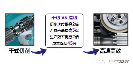 除此之外,绿色制造逐步成为制造业的发展趋势,对于齿轮机床而言,减少切削液的使用,既可以减少污染,更重要的是降低了成本,因此,干切工艺目前备受关注,而实现干切的基本条件就是高速切削,FANUC的直驱电机在高速性能上表现优越,契合了绿色制造、干切工艺对齿轮机床的要求。