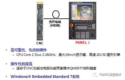 这里还要单独提一下FANUC的Panel i,经常有客户咨询FANUC是否支持诸如Windows一类的开放性的平台,其实只要使用Panel i就可以很好的满足大家对开放性的要求了,Panel i类似于工业pc设备,可以和CNC完美集成,便于客户集成PC软件,集成专用的软件模块。如果有和系统做数据交互的需求,也可以使用FANUC提供的FOCAS函数库,在PC机上使用VC、C#等软件自行开发专用软件。