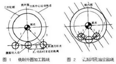 在进行工件数控铣削加工时,要结合工件的工艺性要求去选择合适的进刀方式,以确保工件的切削加工精度和加工效率。在铣削平面工件外轮廓时,应安排好刀具的切入、切出路线。尽量沿轮廓曲线的延长线切入、切出,以免交接处出现刀痕。同时在铣削加工中应根据工件情况选择顺铣还是逆铣。