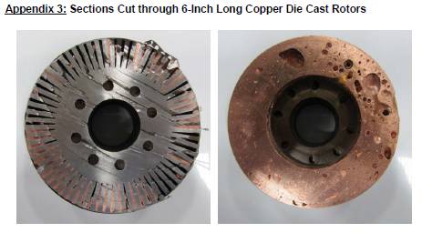 由于铸铜端环气泡过多、无法进入间隙等问题,6英寸的铜芯转子无法通过铸造方案制造出来。于是他们转而制造了3英寸的铜芯转子进行实验。