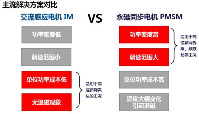 从性能上看,永磁同步电机在瞬态仍然可以保证较高的效率,同时有着更大的功率密度,因此适用于频繁起停的工况以及较小的乘用车布置空间。而感应电动机胜在成本低、可靠性更高,同时稳态的效率也不错(大部分工况85%~90%以上),因而在高速路网发达的工况以及较大的乘用车布置空间的条件下,感应电机可以满足需求。