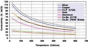 不同金属材料的电导率如下图(蓝色线是铜,粉色线是铝):