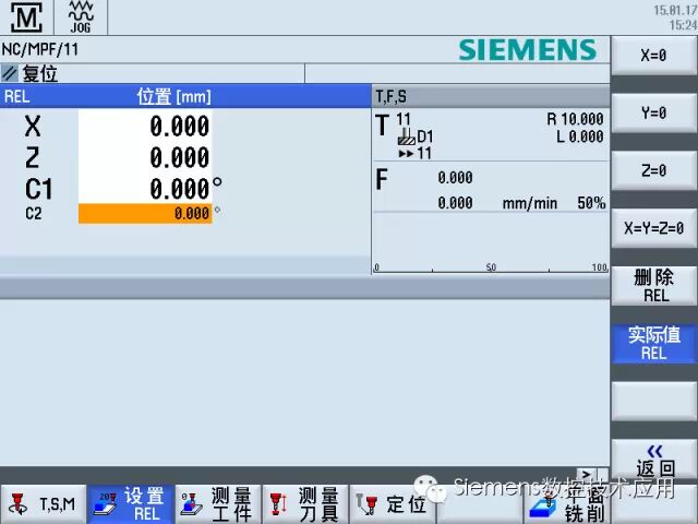 当选择实际值REL时,水平第二个软键就会显示为设置REL;