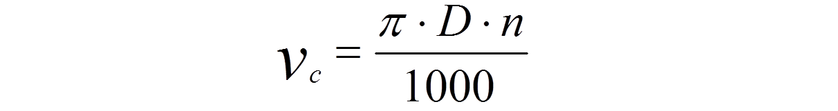 2. 根据转进给率,工件的直径(D,单位mm),主轴的转速(n,单位rpm),我们可以计算出刀具切削的线速度(vc)。