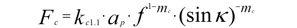 1. Fc等于单位切屑截面积的切削力kc(单位N) 和切屑截面积A(单位mm2)的积: