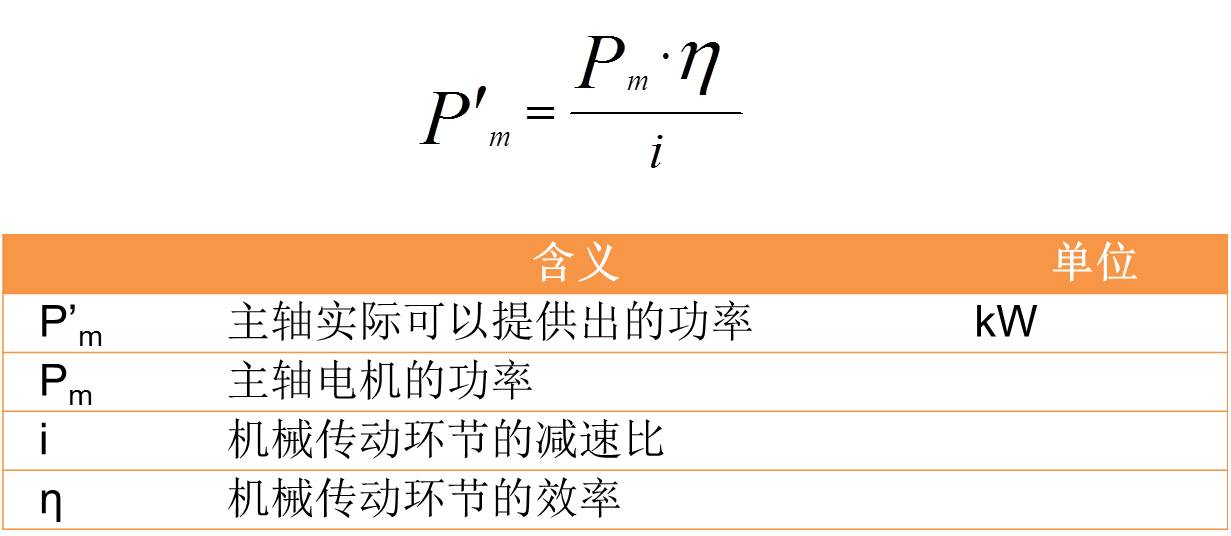 下一步就相对简单了,我们通过查找主轴电机的型号可以查到电机的特性曲线,近而可以计算出主轴电机所能提供出来的功率值