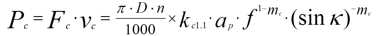 既然使用功率来描述这些加工参数之间的关系,那么首先我们需要计算刀具的切削力(Fc),以及切削速度(Vc),而他们的乘积就是功率。