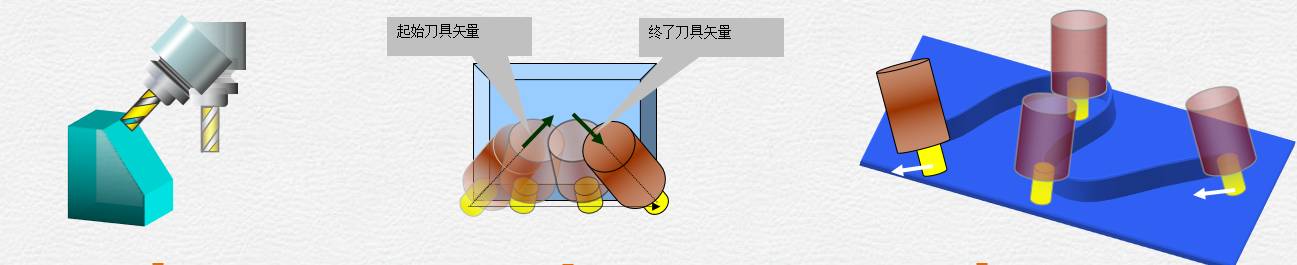如图,五轴机床可以采用刀具侧刃切削,加工效率更高。