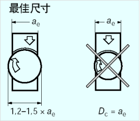 按照惯例,根据工件尺寸特别是工件铣削宽度来选择铣刀直径, 但是对于某个给定的面铣刀,它的最佳铣削宽度是铣刀标称直径的70-80%。