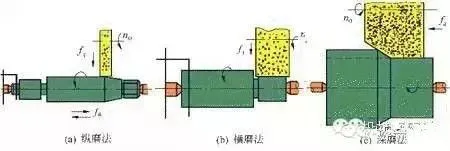 一般切入磨削法效率高于纵向磨削法。如果将砂轮修整成成形面,切入磨削法可加工成形的外表面。