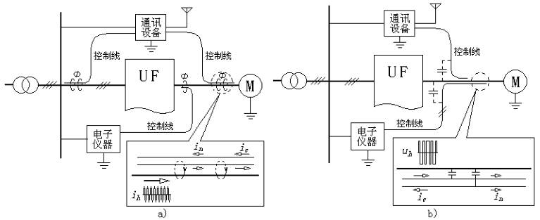 静电感应方式:这是电压干扰信号的主要传播方式