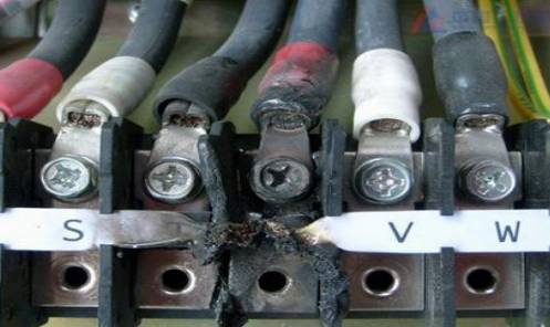 变频器大功率部件由于通过的电流大,螺丝一定要拧紧,螺丝松动会造成接触电阻增大,发热量高,甚至产生电弧,会造成接触部位烧坏,输出电流不稳定,久而久之,就会损坏变频器。