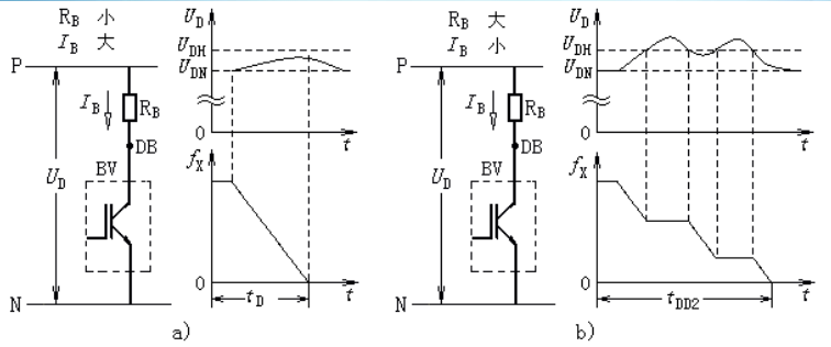 在大惯量负载,如离心风机、离心搅拌机等,如果设置的减速时间太短,电机处于发电状态使直流母线电压过高而损坏变频器。