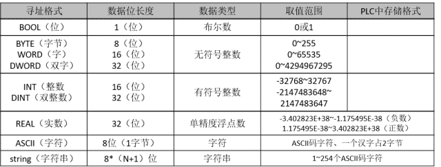 (3)WORD:数据类型字,16位的二进制数存储器,取值范围0~65535,对存储器的寻址方式为字如VW10,对应使用的指令如MOV_W、WAND_W等。