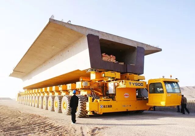 全球最大的架桥设备,来自于中国。该设备可以将长50米、宽15.8米、重1500吨的预制混凝土箱梁从TE1600轮胎式运梁机上提起并放置在墩位上