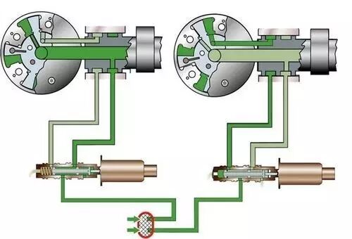 (3)电磁阀卡住。电磁阀的滑阀套与阀芯的配合间隙很小(小于0.008mm),一般都是单件装配,当有机械杂质带入或润滑油太少时,很容易卡住。处理方法可用钢丝从头部小孔捅入,使其弹回。根本的解决方法是要将电磁阀拆下,取出阀芯及阀芯套,用CCI4清洗,使得阀芯在阀套内动作灵活。拆卸时应注意各部件的装配顺序及外部接线位置,以便重新装配及接线正确,还要检查油雾器喷油孔是否堵塞,润滑油是否足够。