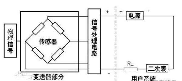 通常情况下,自动化控制仪表由传感器、变送器、显示器三部分组成。其中传感器负责被测对象模拟信号的检测;变送器负责将传感器输出的信号转化为标准电流信号(4~20 mA),同时将信号输送至PLC控制器;显示器负责测量数据的直观显示。