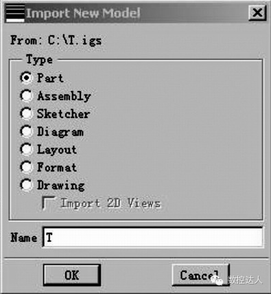 (3) 开启Pro/ENGINEER,单击“File→Import→Creat New Model”,选择上一步转换生成的IGES文件,单击“Ok”,系统弹出“Import New Model”对话框(图3)。