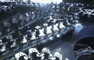 不过,这两种方法并不适合加工金属。要想3D打印出金属零件,需要使用金属粉末,和足以让它们结合在一起的激光。如上图所示,在一个铺满金属粉末的槽内,计算机控制着一束大功率的二氧化碳激光选择性地扫过金属粉末表面。在激光所到之处,表层的金属粉末完全熔融结合在一起,而没有照到的地方依然保持着粉末状态。整个过程都需要在一个充满惰性气体的密封舱内进行。