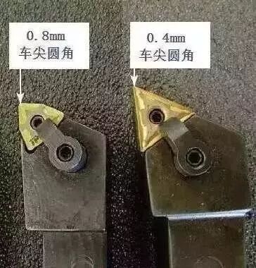 但是,如果半径过大,由于刀具和工件接触过大,会产生震颤。相反,如果半径过小,刀尖会变弱,会很快磨损。需要经常重新磨锋利。圆角半径一般为0.3~0.4mm。