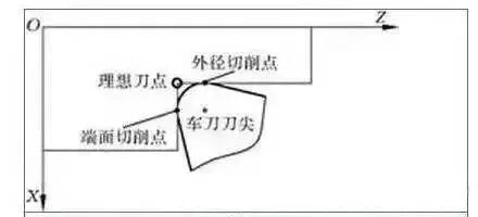 编程时,通常都将车刀刀尖作为一点来考虑,但实际上刀尖处存在圆角。当用按理论刀尖点编出的程序进行端面、外径、内径等与轴线平行或垂直的表面加工时,是不会产生误差的。但在进行倒角、锥面及圆弧切削时,则会产生少切或过切现象,如图所示。具有刀尖圆弧自动补偿功能的数控系统能根据刀尖圆弧半径计算出补偿量,避免少切或过切现象的产生。