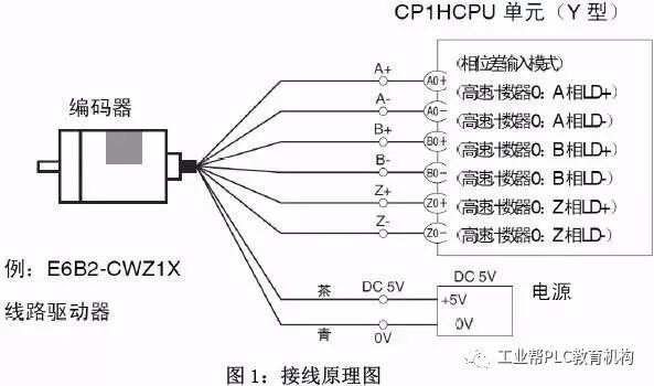(5)图1 为线驱动编码器的接线原理,图2 为实际接线图,黑色线接A0+,黑红镶边线A0-,白色线接B0+,白红镶边线接B0-, 橙色线接Z0+,橙红镶边线接Z0-,褐色线接电源+5V,蓝色线接电源0V,切勿接线错误。