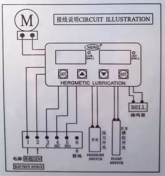 ② 带数显PLC[可灵活调整油泵工作时间(1~999s)和间歇时间(1~999m)];配有液位开关,低油位4提醒;带卸压装置。