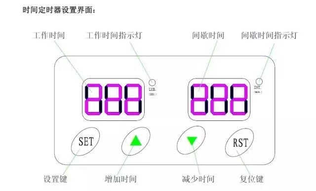 间歇时间需根据机床设备所需润滑油量的大小,进行调整确定,一般在25-30 分钟左右的居多。
