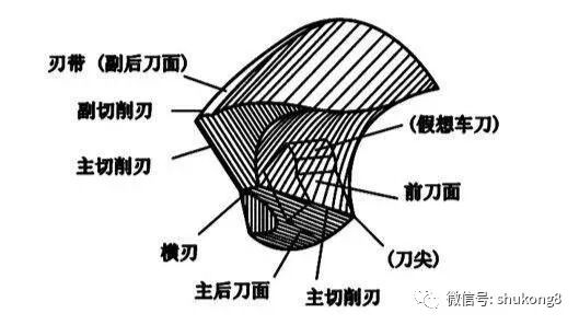 由于切削刃上各点的刃倾角绝对值从外缘导钻心逐渐变大,所以切削刃上各点的主偏角也是外缘处大,钻心处小。