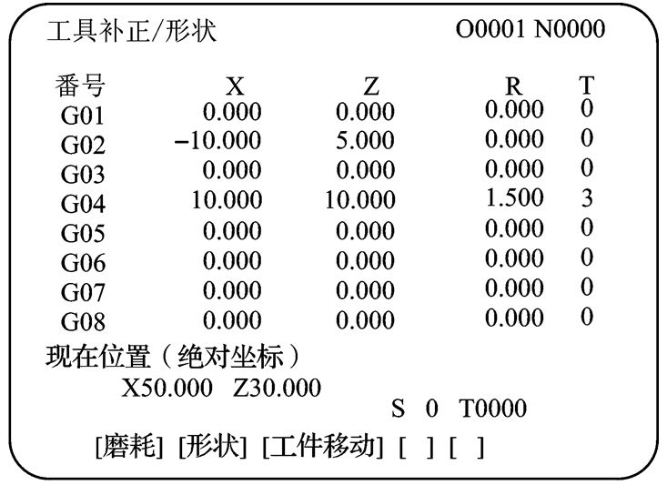3)将X、Z值输入相应的刀具几何偏移存储器中。