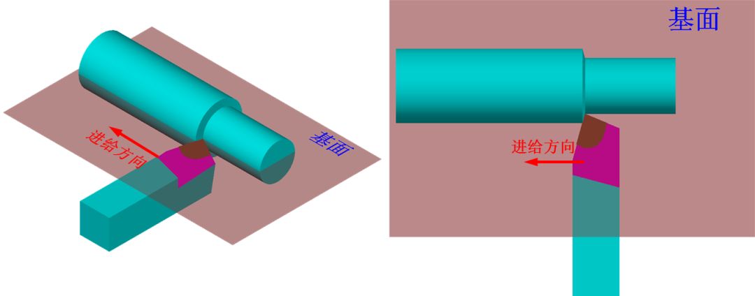 2)基面——过主切削刃的某一选定点并平行于刀杆底面的平面。