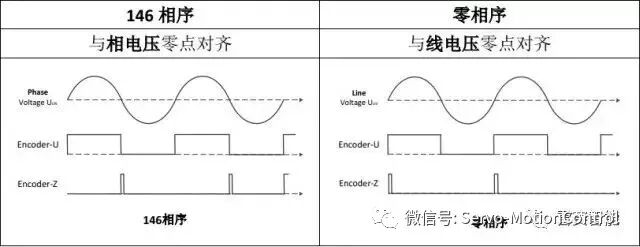 零相序为:霍尔U对UV线间反电动势(探头正接U、负接V), 霍尔V对VW线间反电动势(探头正接V、负接W),霍尔W对WU线间反电动势(探头正接W、负接U),相位关系为霍尔信号的上升沿过零点对反电动势上升沿的过零点。