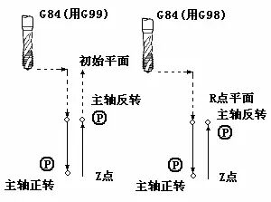 (4)主轴反转,丝锥以进给速度反转退回到参考平面R;