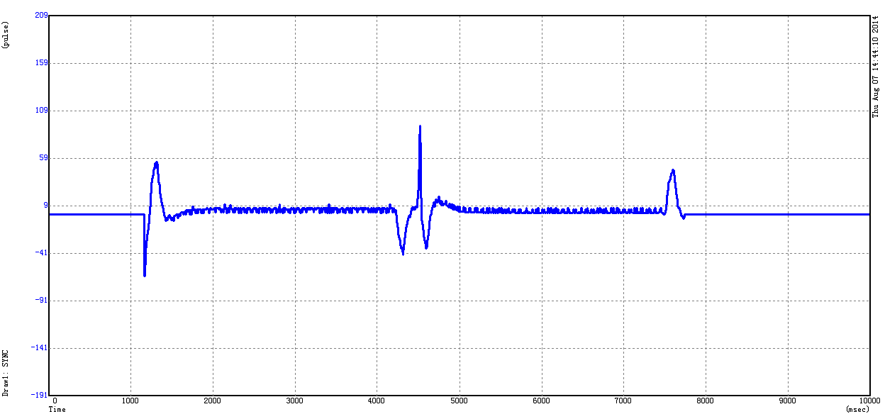 刚性攻丝循环通过复位信号操作,主轴位置丢失,因此该方式下攻丝轴和主轴同步位置关系无法保证,针对该问题还未找到解决方案,仅仅可以通过参数调整误差范围,无法完全消除,使用时应引起注意。该现象可以从SERVO GUIDE测试同步误差波形图中看出。