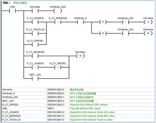 注意:手轮激活的PLC编程,一般手轮激活在JOG模式下,如此应添加当DRF激活后,AUTO 或MDA方式下也支持手轮功能。示例如下