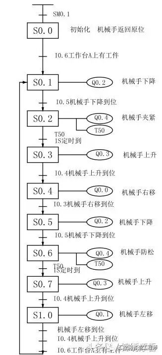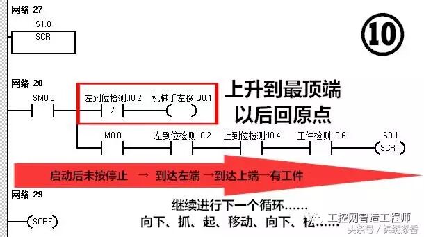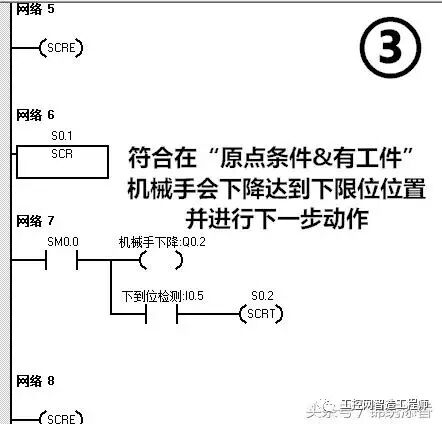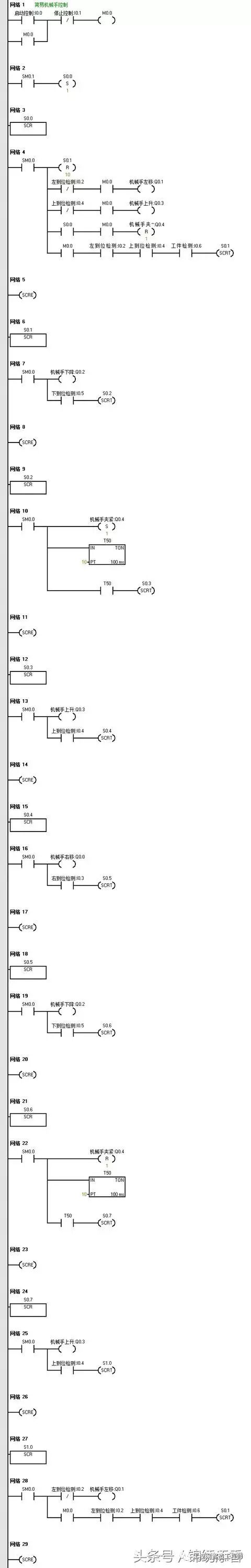 一大堆梯形图看着真是眼花缭乱,不用担心我们一段一段分析分析这个机械手是如何工作的!